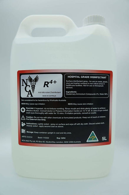 Using the latest technology in chemical manufacturing, NCA has created a surface disinfectant right here in our laboratories in Sydney, that can deactivate bacteria within seconds. R4+ uses chemical preservation that allows the chemical compounds responsible for denaturing bacteria, to last for long periods on surfaces, preventing bacterial growth.